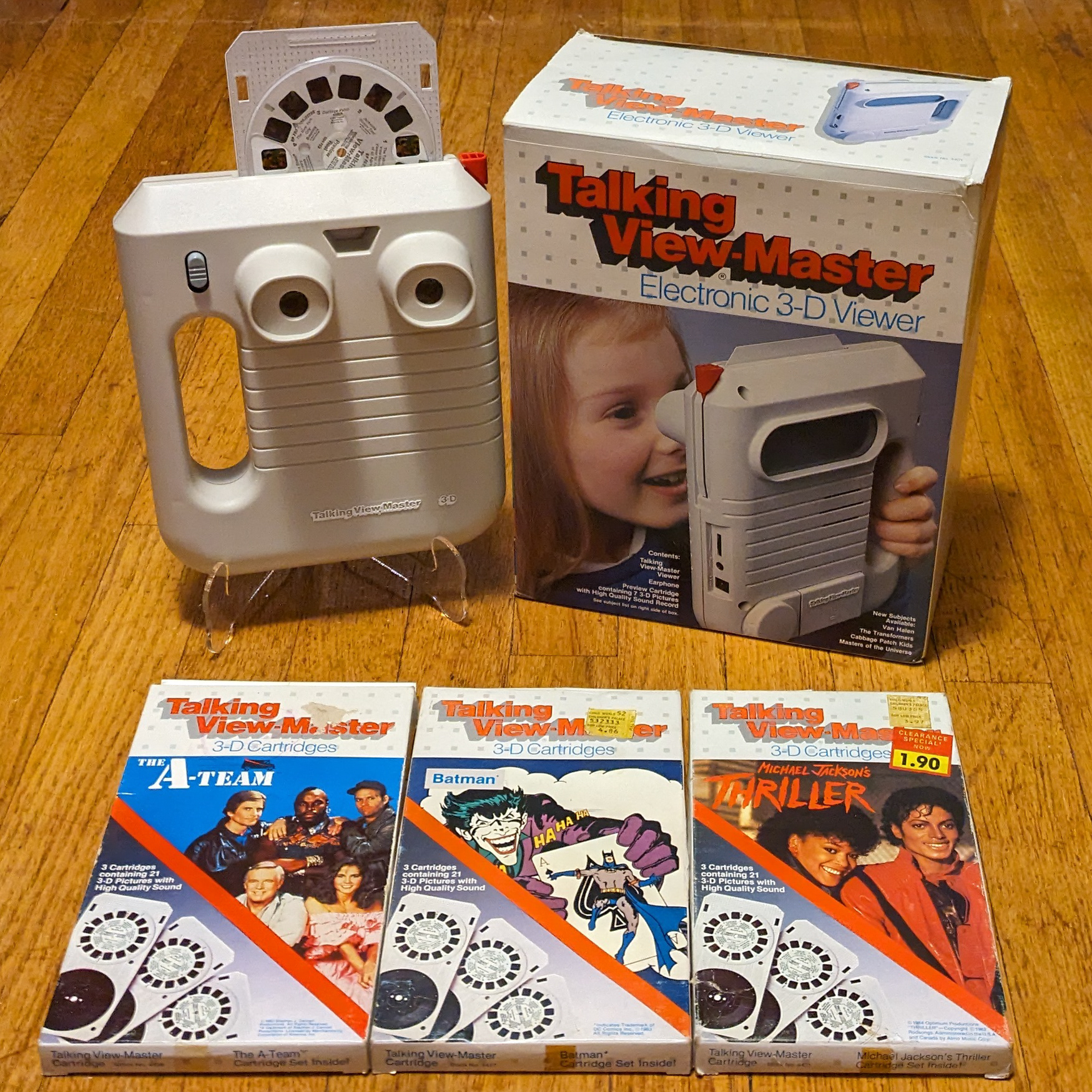 Talking View-Master - Complete in Box with 3 MIB Cartridges - The A-Team, Batman & Michael Jackson's Thriller - 1983/1984
